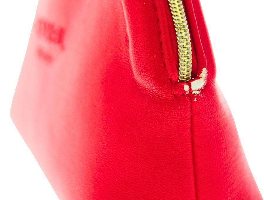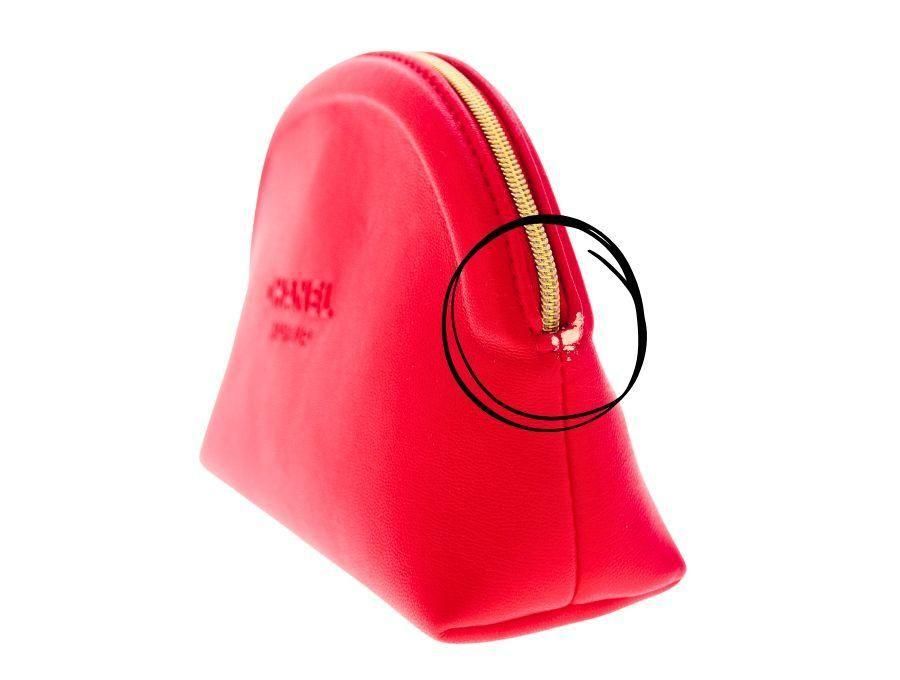 シャネル メイクアップのコスメポーチです。2020年モデルのノベルティになっており、鮮やかなレッド色とゴールド金具の組み合わせでインパクトがあり豪華なイメージ。柔らかい肌触りのボディはレザー調のシボがあり「CHANEL MAKEUP」のロゴがエンボス加工されていますので立体感があり格調高く見えます。半月型ラウンドポーチはファスナーが大きく開くので中身が見やすく、マチもあり小物をたくさん収納できますので化粧ポーチとしてピッタリです。 |
