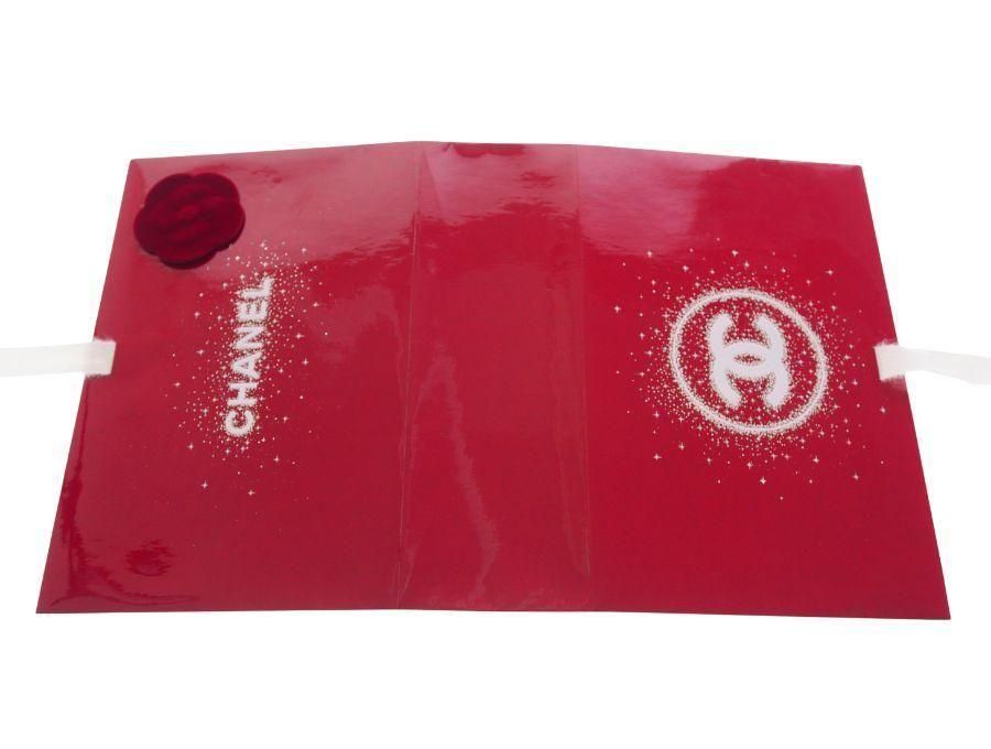 シャネルのオリガミバッグになります。2018年のホリデーシーズン(感謝祭からクリスマスをへて、元旦までの期間)にのみ使用されていたギフトラッピング用のBoxで、リボンを結び合わせるだけで立体的に組み立つアイコニックなパッケージです。CCマークと「CHANEL」ロゴには、キラめく星がデザインされており豪華です。こちらにはワインレッドのカメリアステッカーも貼られており、ベロア調の肌触りになっております。 ※ こちらの商品は1点物になります。 |