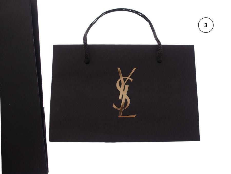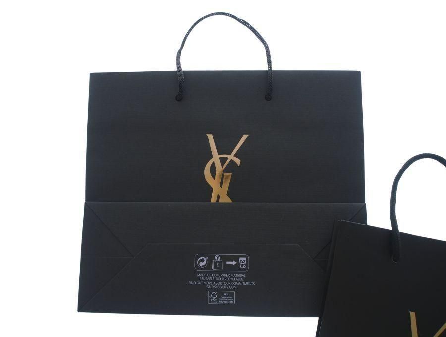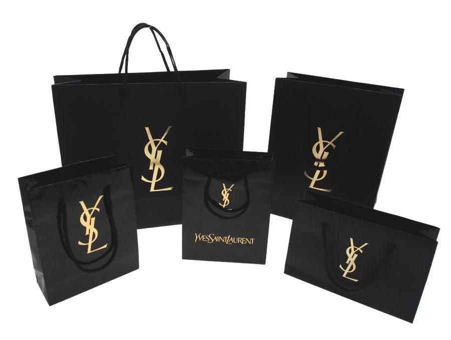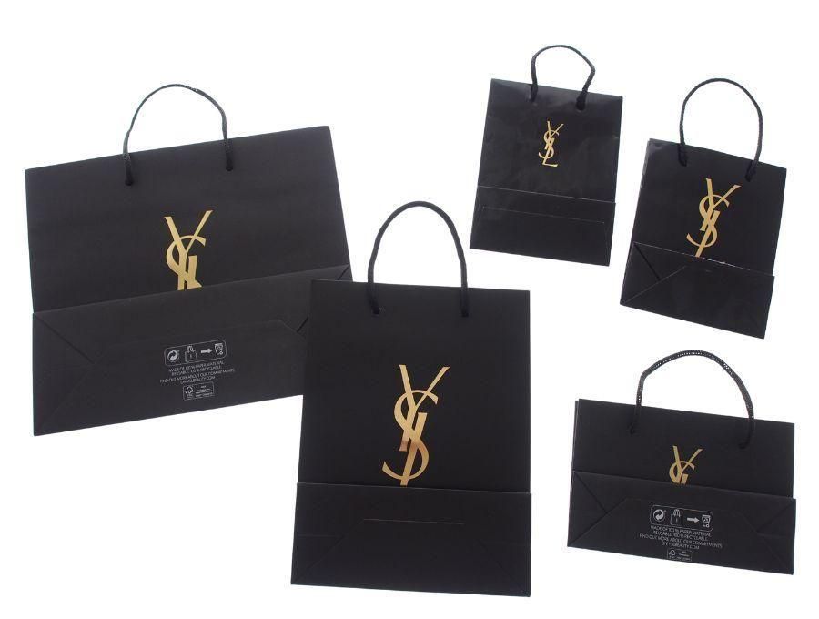 イブサンローランのショッピングバッグになります。使い道によって選べる5サイズを、1枚づつセットにしました。全てにYSLのブランドロゴがゴールドカラーでプリントされており、マットな質感で落ち着いた印象の1・3には地球資源の保全に貢献しているFSCマーク入り。表面にフィルムを貼り付けた光沢がある紙袋4・5には、箔押しロゴで高級感が増しています。ラッピング、サブバッグ、リメイク等にご活用ください。 ※ こちらの商品は1点物になります。 |
