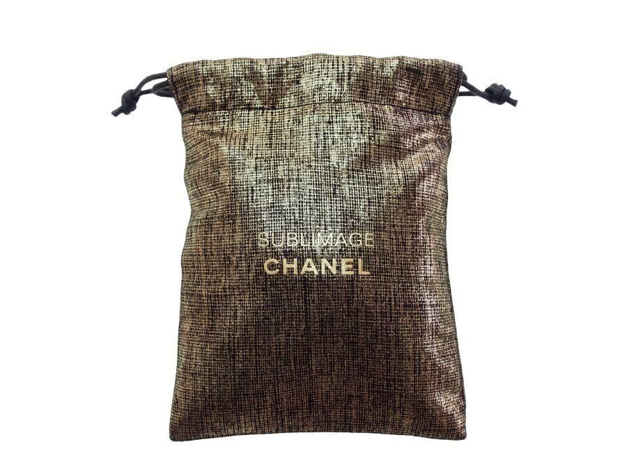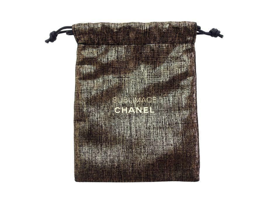 マダガスカル産「バニラ プラニフォリア」の独自の成分を配合した、シャネルの最高峰スキンケアライン「サブリマージュ」の巾着ポーチです。CHANELコスメカウンターにてサブリマージュ商品を購入した方に、サンプルと一緒に配られた巾着袋になっております。金糸を織り込んだかのようなチェック柄のベースに、立体感のあるバニラの花が刺繍されておりゴージャスです。反対面には「SUBLIMAGE CHANEL」のロゴも。散らかりやすい小物の整理や、バッグの中を整理するのに活用できます。 |