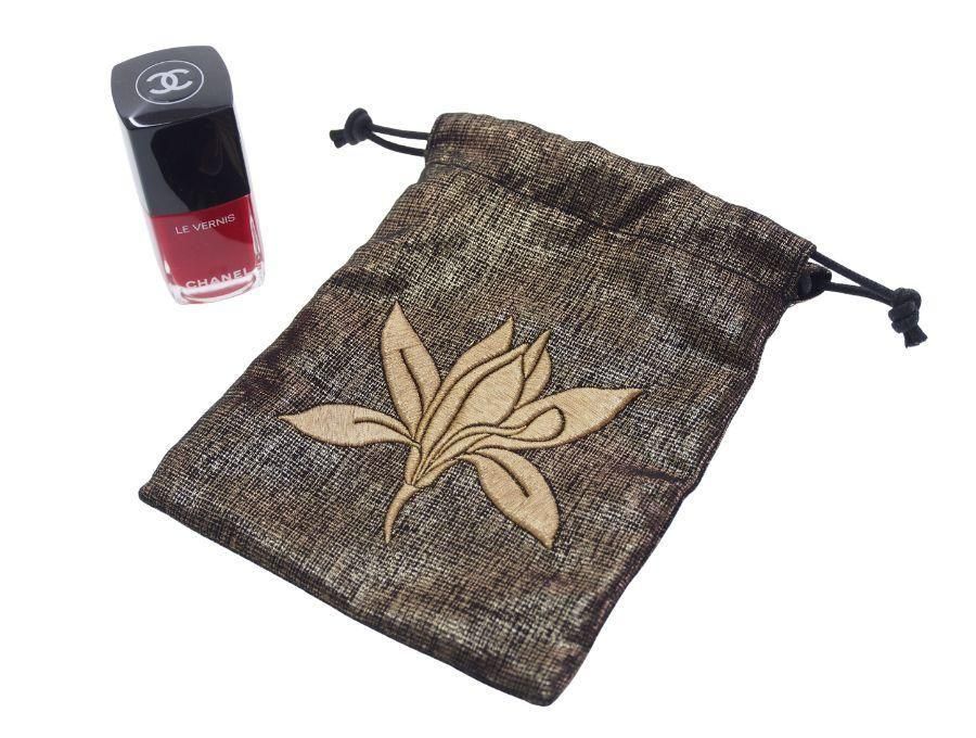 マダガスカル産「バニラ プラニフォリア」の独自の成分を配合した、シャネルの最高峰スキンケアライン「サブリマージュ」の巾着ポーチです。CHANELコスメカウンターにてサブリマージュ商品を購入した方に、サンプルと一緒に配られた巾着袋になっております。金糸を織り込んだかのようなチェック柄のベースに、立体感のあるバニラの花が刺繍されておりゴージャスです。反対面には「SUBLIMAGE CHANEL」のロゴも。散らかりやすい小物の整理や、バッグの中を整理するのに活用できます。 |